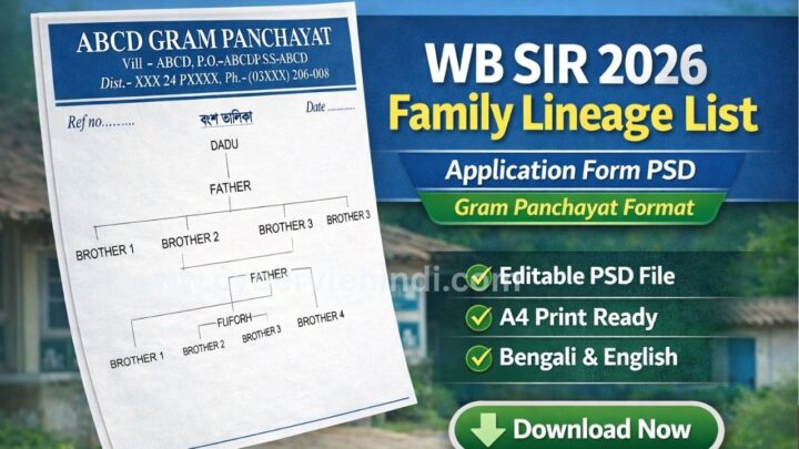 WB SIR 2026 Family Lineage List Application Form PSD | WB SIR 2026 বংশ তালিকা | Gram Panchayat Format