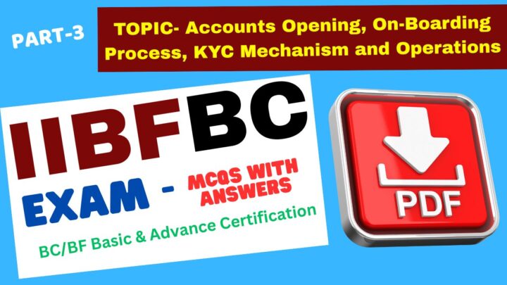 IIBF BC/BF Exam MCQ PDF – Part-3| Accounts Opening, On-Boarding Process, KYC Mechanism and Operations